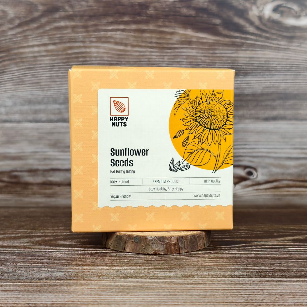 Hạt hướng dương của Happy Nuts được đựng trong hộp giấy nhỏ gọn, thuận tiện khi mang theo bên người và thân thiện với môi trường. Chúng tôi cam kết sản phẩm luôn có chất lượng tốt nhất. Khi ăn người dùng có thể cảm nhận rõ ràng hương vị thơm ngon, giòn rụm, bùi bùi của từng hạt hướng dương, đây sẽ là một trải nghiệm khó quên đối với người ăn.