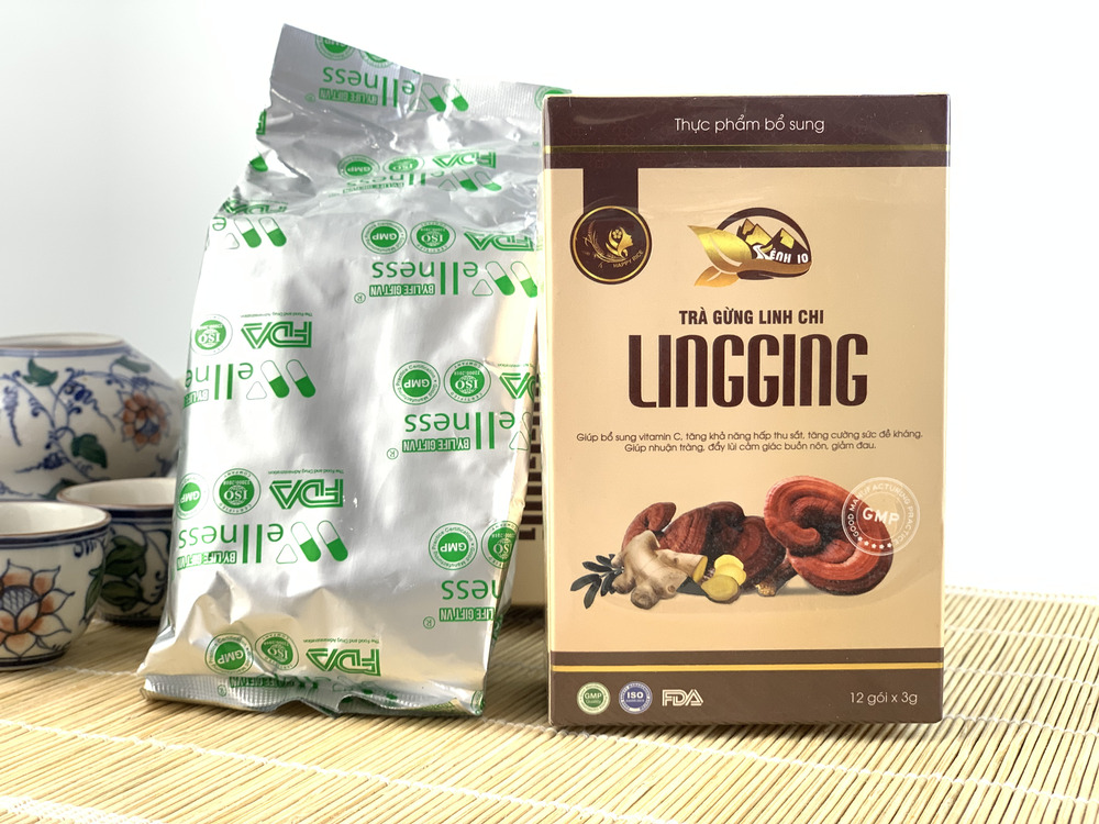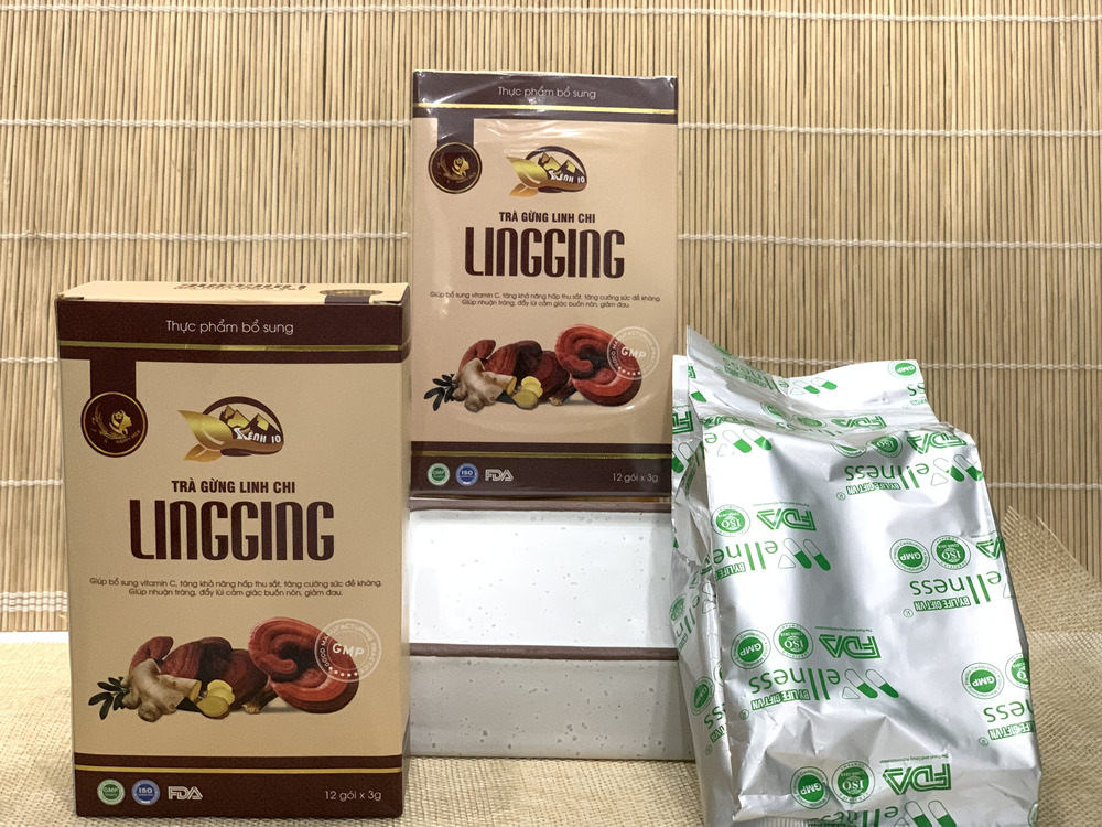 - Tên sản phẩm: Trà Gừng Linh Chi