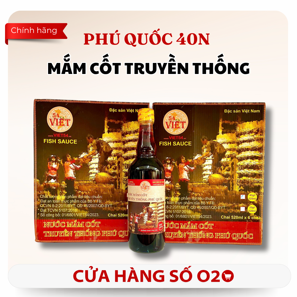 Nước mắm cốt 40 độ đạm là sản phẩm cao cấp, được sản xuất theo phương pháp ủ chượp thùng gỗ truyền thống Phú Quốc. Với nồng độ đạm lên đến 40g/lít, nước mắm mang hương vị đậm đà và thuần khiết, phù hợp với nhiều loại món ăn và phong cách ẩm thực khác nhau. Sản phẩm được chế biến từ nguyên liệu cá cơm tươi ngon và muối biển tự nhiên, không chứa chất bảo quản, phẩm màu hay hương liệu, đảm bảo giữ nguyên giá trị dinh dưỡng và hương vị truyền thống.