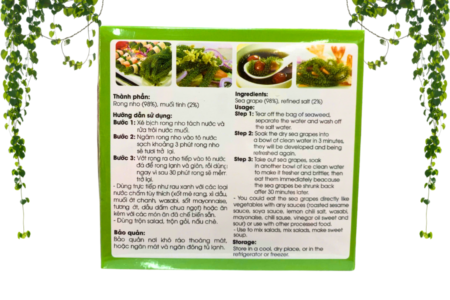- Thành phần: Rong nho (98%), muối tinh (2%)